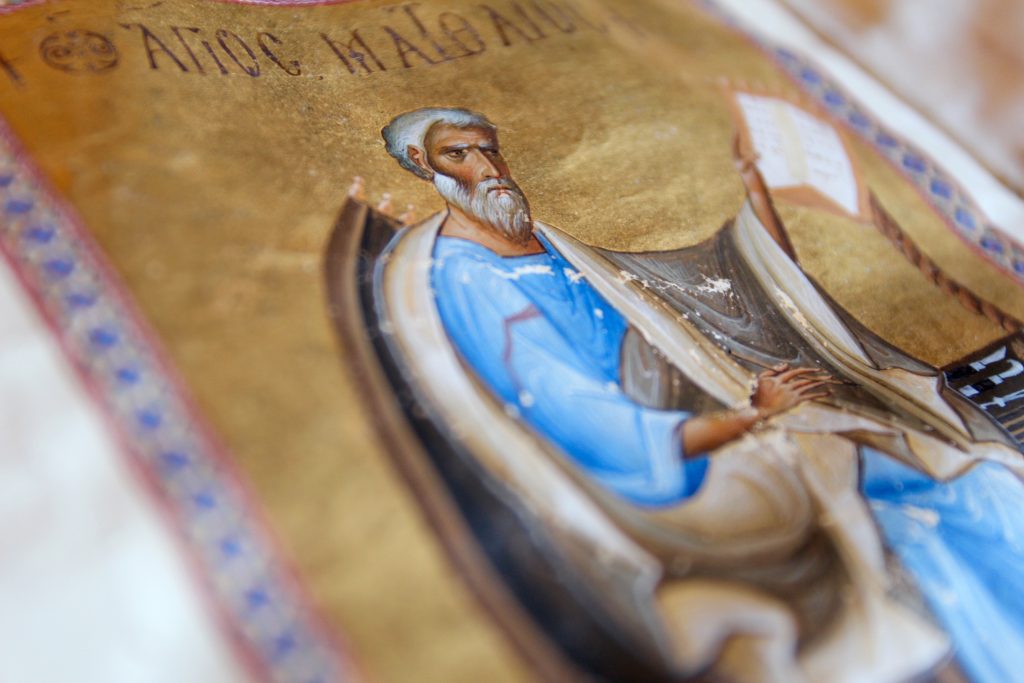 The picture above was taken at the Monastery of St. John the Theologian on the island of Patmos. The frescoes painted in the 12th century depict narrative scenes from Scripture and of St. John’s life.