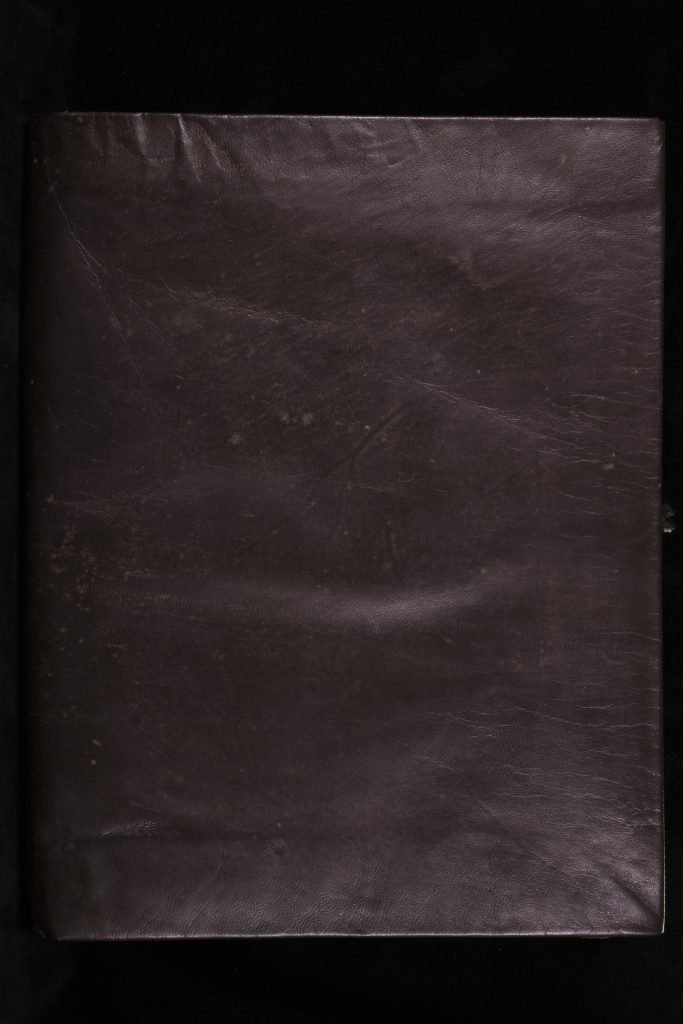 As exciting as the details in a manuscript might be, you can’t get too distracted by them. Imaging manuscripts requires precision and problem solving, and every artifact presents its own challenges. In this case, the manuscript is bound between leather covers that are different on the front and back. The leather on the back cover wraps around a wooden board with two remaining metal studs affixed. While the front cover is made of flexible leather without a board.