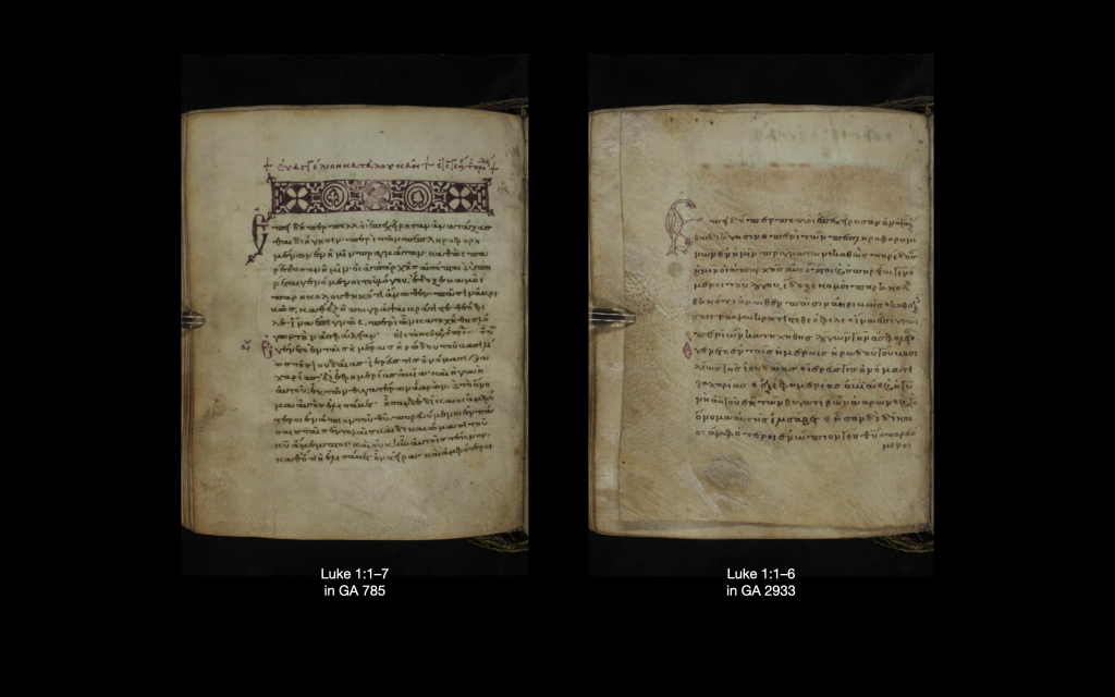 While working in the reading room at the National Library of Greece in Athens, Dr. Daniel B. Wallace noticed something unusual in one of their Gospels manuscripts. He turned to the Gospel of Luke and found two copies of the beginning of the Gospel, each clearly written by two different scribes. Wallace found a manuscript within a manuscript! After sending a description of what we discovered and images of the document to the Institute for New Testament Textual Research in Münster, Germany, they confirmed our findings. This second copy of Luke 1 was a bona fide New Testament manuscript and deserved a Gregory-Aland number. So this one codex—a form of bookmaking very similar to modern printed books—technically contains two unique New Testament manuscripts, though one is only a single page. This From the Library series piece features GA 785 and GA 2933 and how the beginning of Luke appeared twice within the same codex.