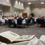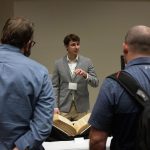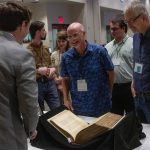 Guests returned from trekking through past centuries to catch up on the present. Mark Gaither shared CSNTM’s updates, highlighting the newly acquired, state-of-the-art digitization equipment. The DT atom, displayed for visitors at the event, allows the CSNTM team to take better images more efficiently, thus improving CSNTM’s ability to provide resources for scholars.