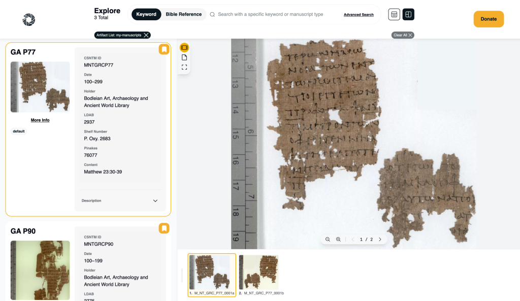 Once you’ve created a manuscript list, we recommend viewing it in Interactive View. This allows you to visually scan, compare, and switch between manuscripts more efficiently.