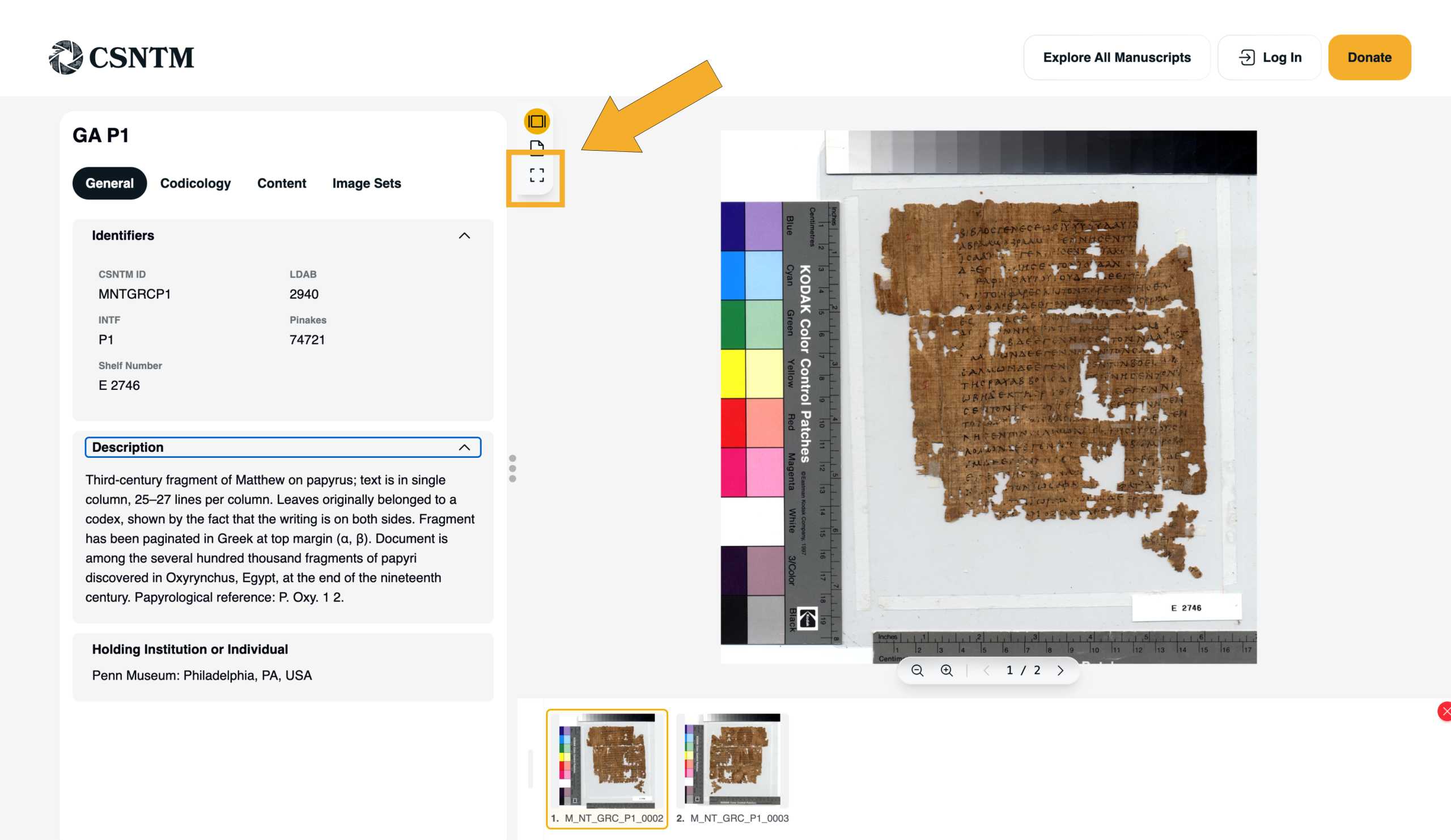 • The manuscript’s images will load directly in the viewer.