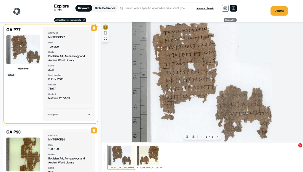 • Quickly move between manuscripts you’ve already curated for study or comparison