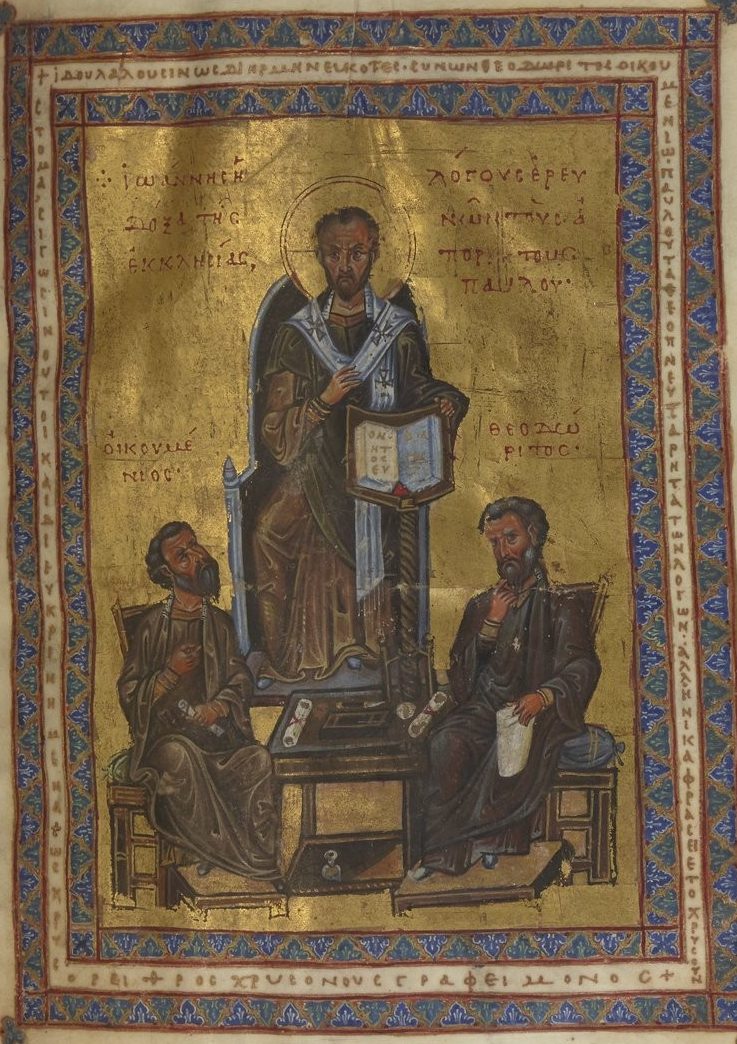 Or as we read in another manuscript: as soon as John the Golden Mouth speaks, Oecumenius and Theodoret remain silent.